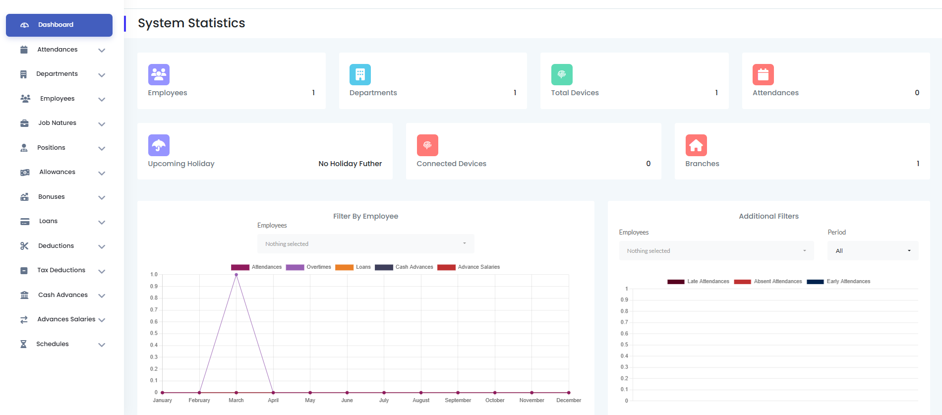The system offers a unified view of employees, attendance, and payroll operations under one dashboard.
